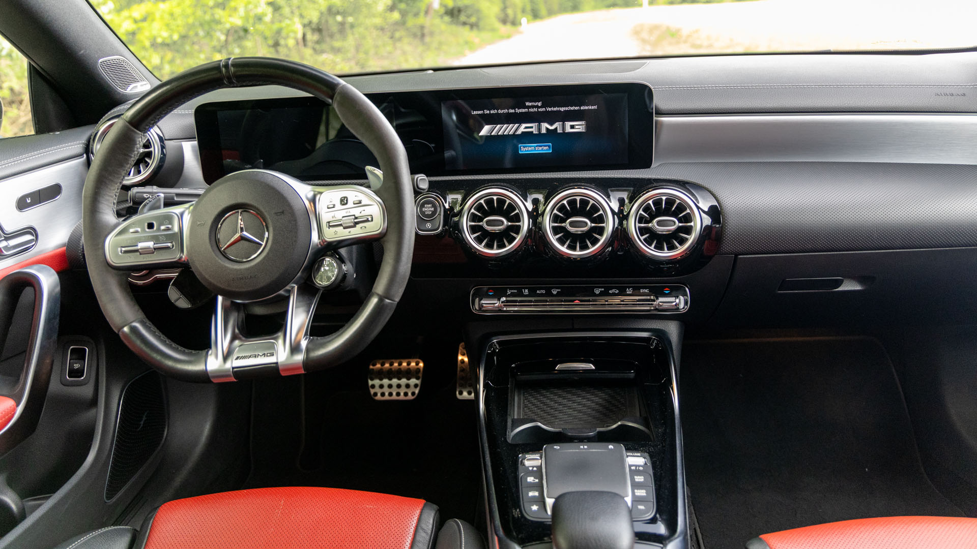 High-performance AMG braking system with red brake calipers