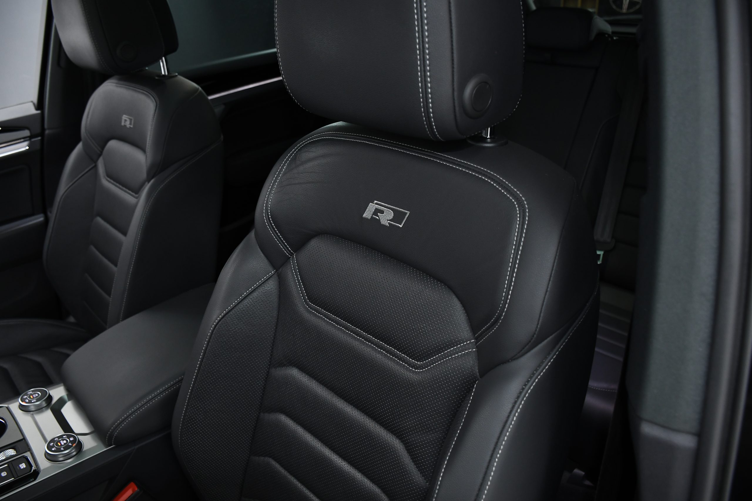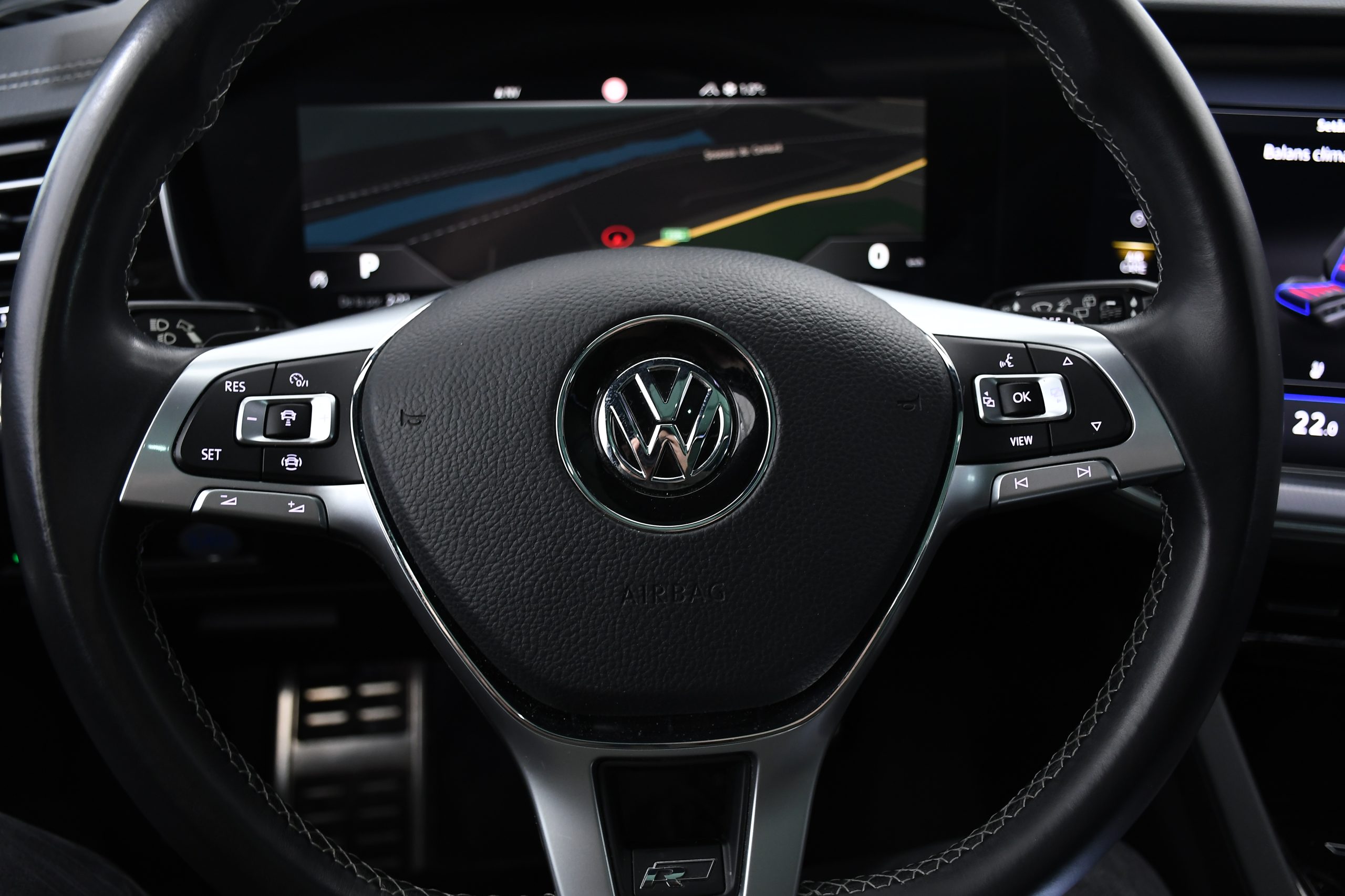 • ⁠R-Line steering wheel with flat bottom, with heating, electrically adjustable, and paddles.
